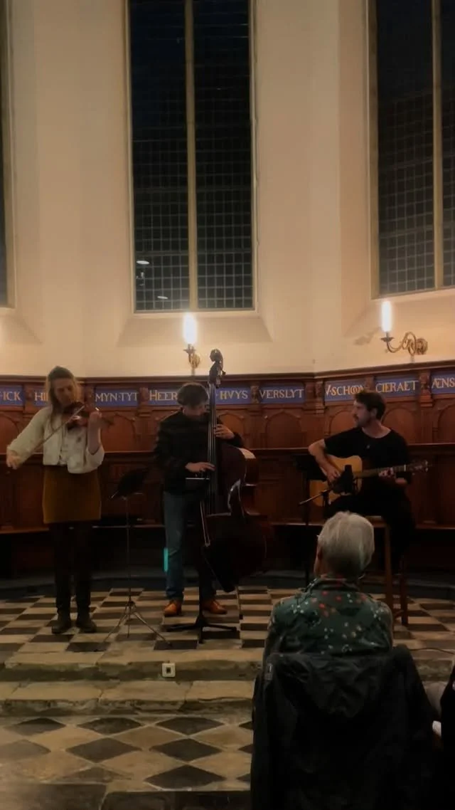 Violiste Sarah Lynn Huizing, gitarist Tom Bouwmeister en contrabassist Boris Kwant richtten het Lumen Folk Trio begin 2024 op. Al in hun eerste jaar stonden ze op het Grachtenfestival, festival Klaterklanken en in kunstenaarsdorp Ruigoord. En je snapt waarom: met de vanzelfsprekendheid van eeuwenoude volkstradities laat het trio je weemoedig in de verte turen en dan weer opgewonden stampen met je voet.